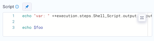 You can also use expressions in Value. For example, if you have an output variable from a previous Shell Script step, you can copy it from the executed step Outputs tab and use it in Value.