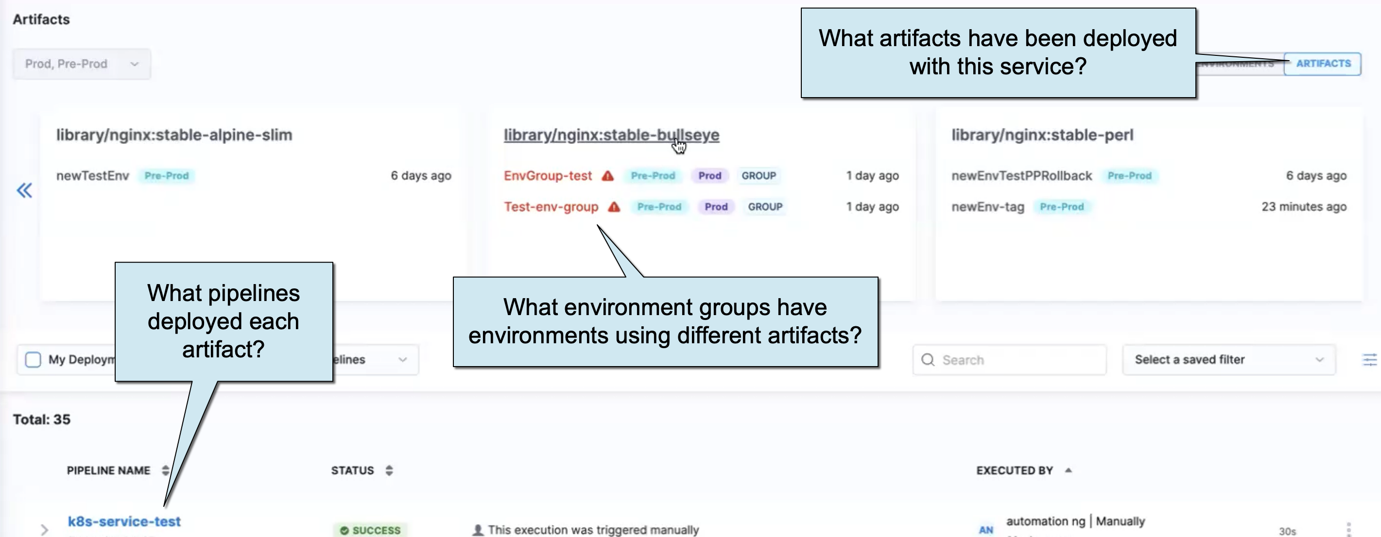 - Clicking the artifact name opens details for all environments where the artifact was deployed.