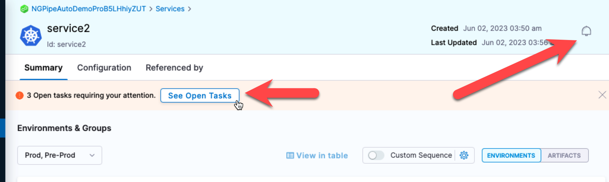 - Clicking the environment opens details for the specific environment where the artifact was deployed.
