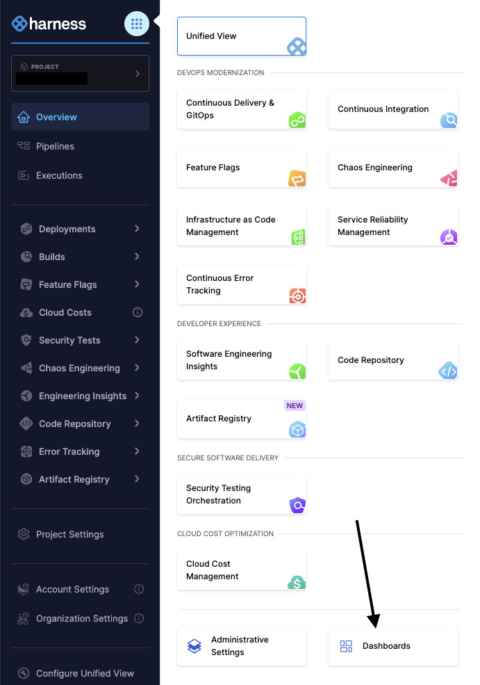 The account-wide Platform Dashboards in Harness contain built-in dashboards that provide advanced details about your deployments and services.