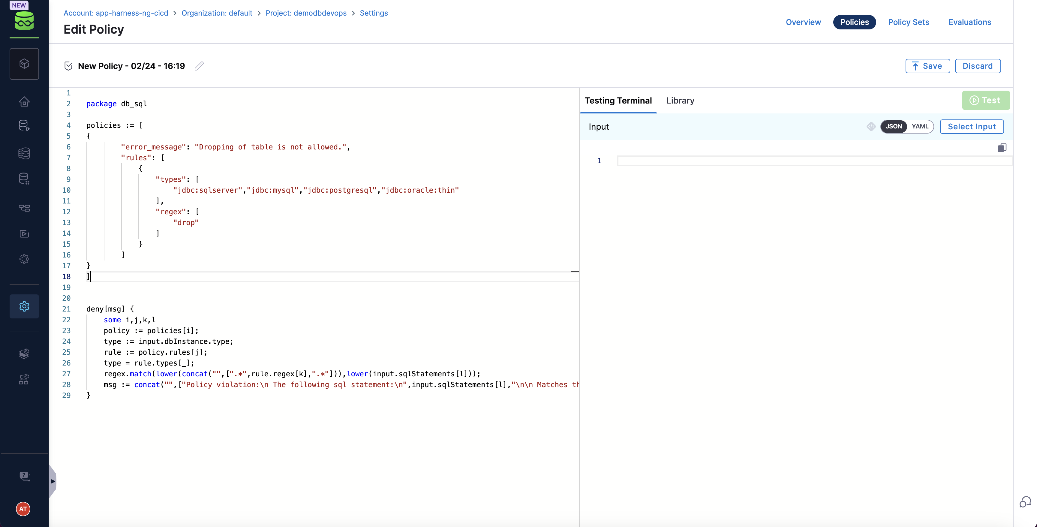 This guide explains how to use Harness Policy Agent to enforce policies on DataBase Devops steps. Rego is a declarative policy language used by Open Policy Agent (OPA) for policy-based control.