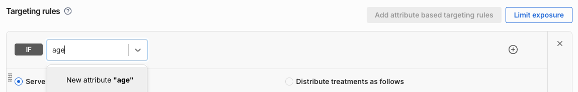 Serve the on treatment for users with custom attribute age greater than or equal to 20:
