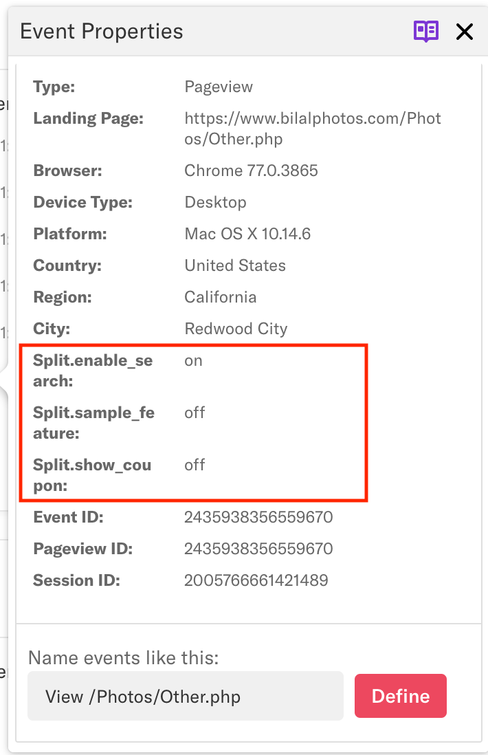 FME impressions describe the treatment that each user receives when a feature flag is evaluated. Attach flag names and treatments as Heap events properties for a user's session.