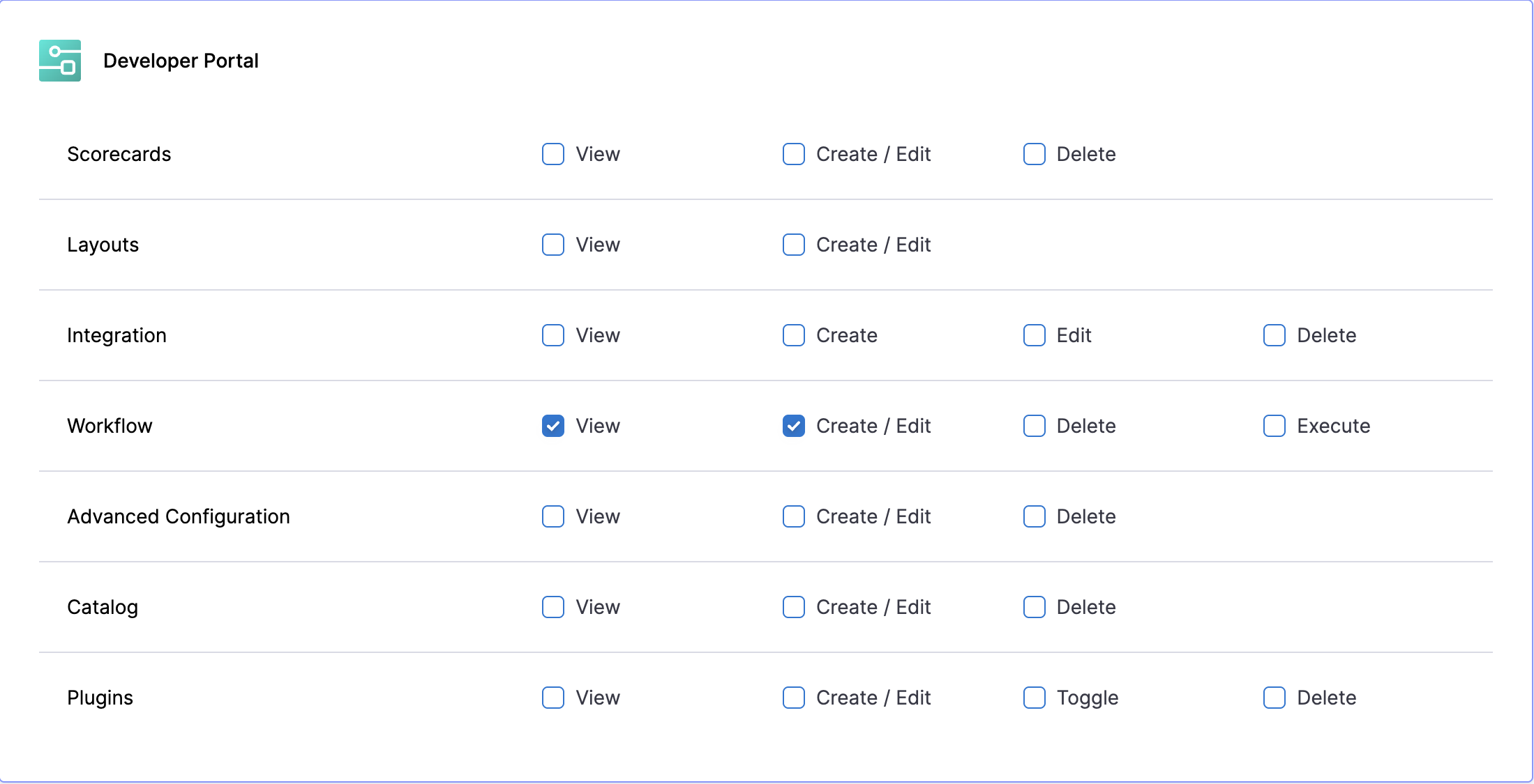 6. Under Developer PortalWorkflow, select the Execute permission.
