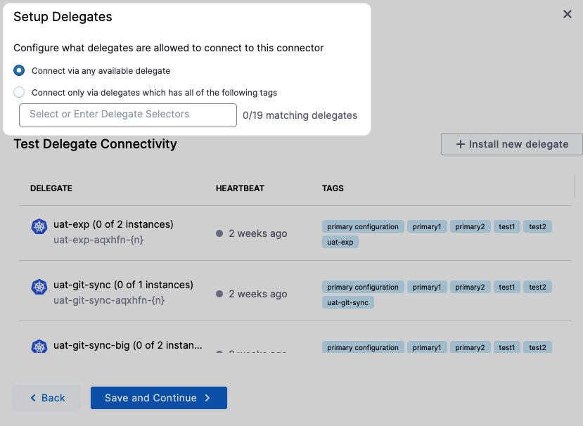 You can select a delegate based on its tags in the Delegate Selector settings of Harness entities like pipelines and connectors.