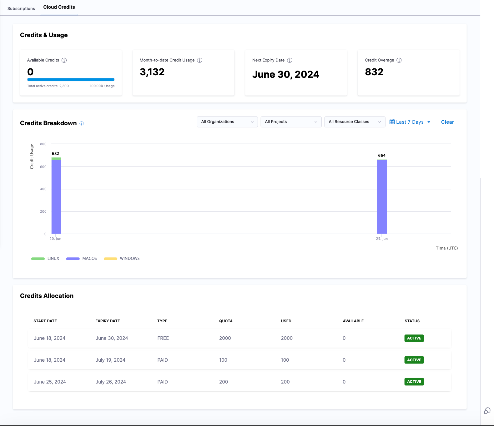 • Month-to-date Credit Usage: Credits consumed month-to-date.