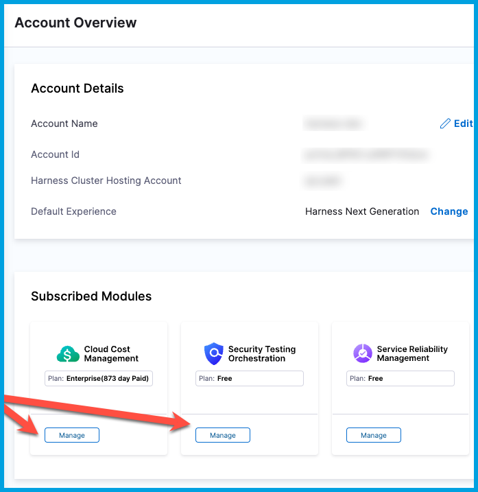 You can view and manage your Harness module subscriptions in your Harness Account Settings.