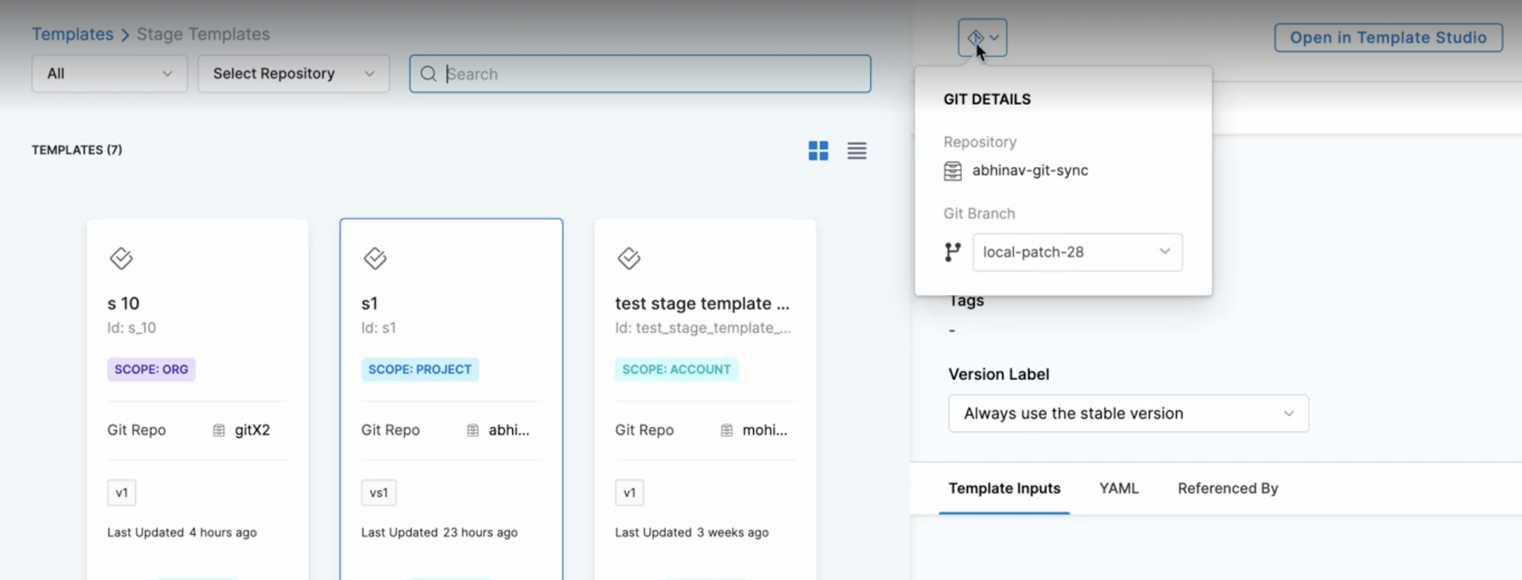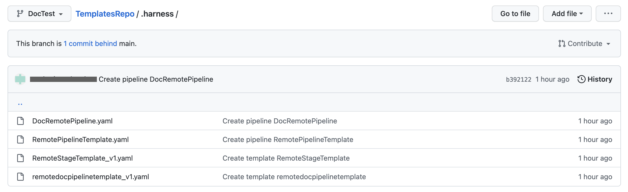 - During pipeline execution, Harness fetches the entities like templates from the same branch as the pipeline. This lets you test the templates before merging them back into the "default" branch.