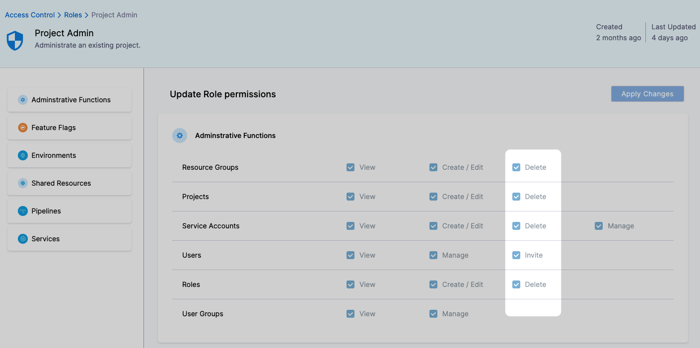 For example, if a user was assigned to a role that had the Create/Edit Pipeline permission, and the role is removed, then the user can no longer create or edit Pipelines.