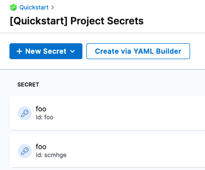 Entities of the same type in the same Project can have the same names but must have different Ids. For example, these secrets are both named foo, but they have different Ids: