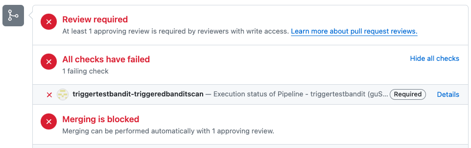 Now that you've set up the rule, trigger another Harness pipeline execution and fail it to verify that the rule stops the pull request.