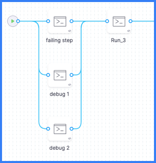 In your pipeline's YAML, add the two debug monitoring steps, as shown in the following example, alongside the failing step, and group the three steps in parallel. Make sure the timeout